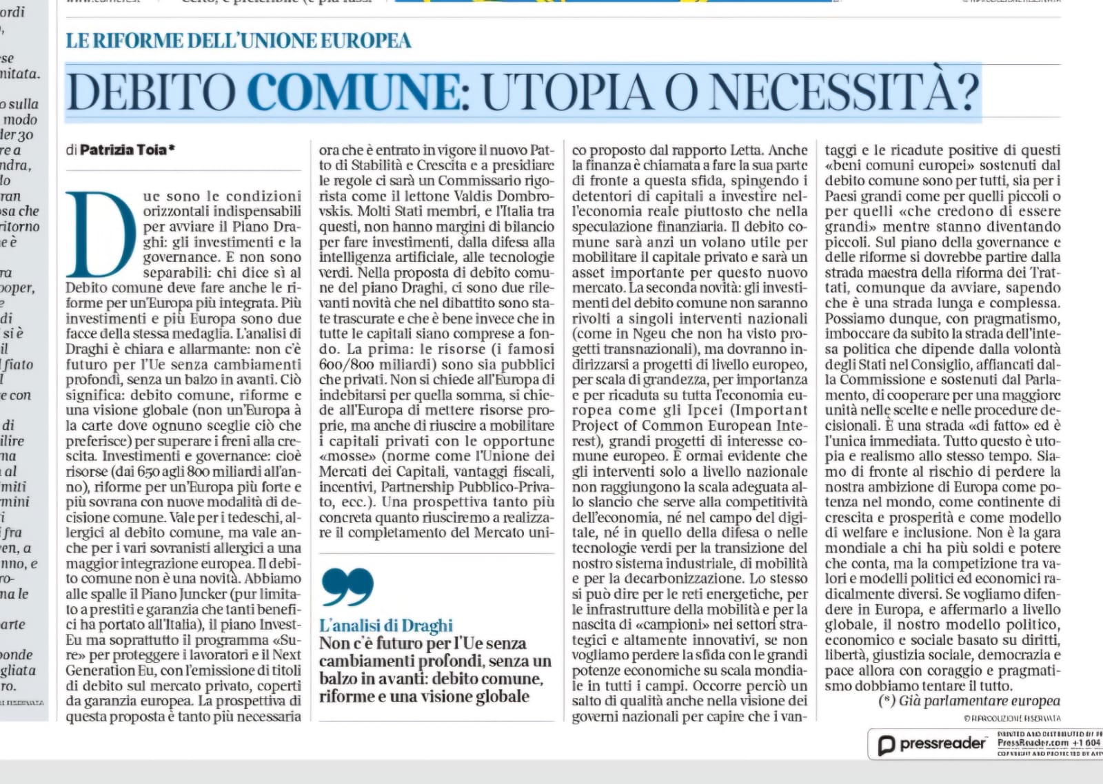 Articolo di Patrizia Toia pubblicato dal Corriere della Sera.