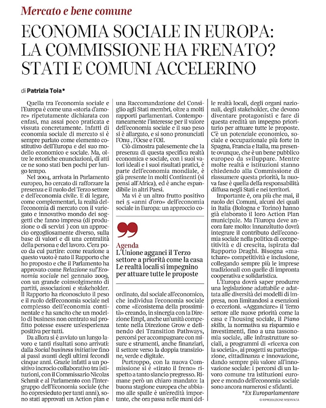 Articolo di Patrizia Toia.